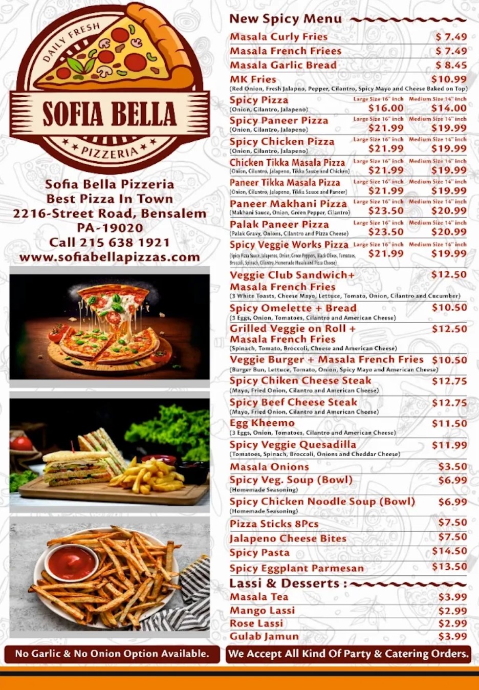 Nestled at 2216 Street Road in Bensalem, PA 19020, Sofiabella Pizzeria represents a culinary evolution that began on Halloween of 2013. While the establishment rebranded from the long-standing Bella Pizza to infuse a totally new and fresh attitude, the legacy continues; it retains beloved favorites while boldly introducing an expanded, diverse menu. The kitchen does not merely serve standard fare. Instead, they specialize in a unique dual-heritage experience: handcrafted Italian classics utilizing 100% Wisconsin mozzarella and premium tomato sauces sit alongside spicy, Indian-style cuisine that ignites the palate. Quality is paramount. From genuine Philly steaks and fresh produce for salads to the surprising delight of a rich Mango Lassi, the commitment to using the finest ingredients is absolute. Patrons dining in can catch their favorite sporting events on multiple TVs, enveloped by a service-oriented culture that prioritizes satisfaction above all else.Whether craving a casual lunch, needing catering for a major event, or seeking the specific comfort of a gourmet pizza, this is the destination.